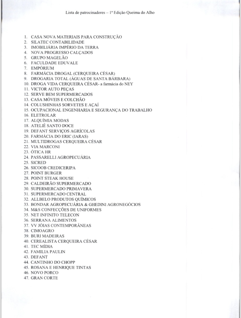 Patrocinadores queima do alho